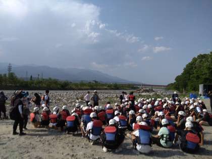 ラフティングのボートが帰って来たので、いよいよ上船です。