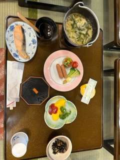 6時10分に起床し、部屋の片付けをして今から朝食です。昨日の晩御飯も含めて美味しそうです。