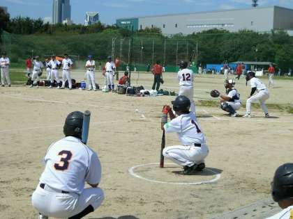 午後からは男子の部が行われ、北中チームは南港南中・渚小合同チームと対戦。F先生の大活躍がありましたが、3−15で敗れました。残念!