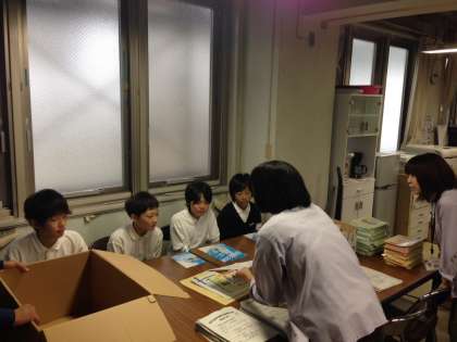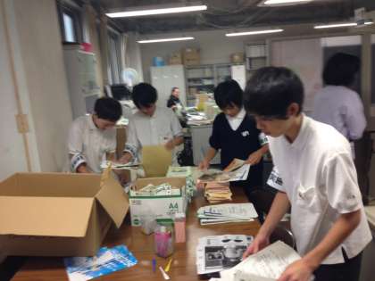 各フロアを案内いていただいた後、今週の土曜日に北中で行われる「住之江区交通安全区民大会」の資料の袋詰めのお手伝いをしています。