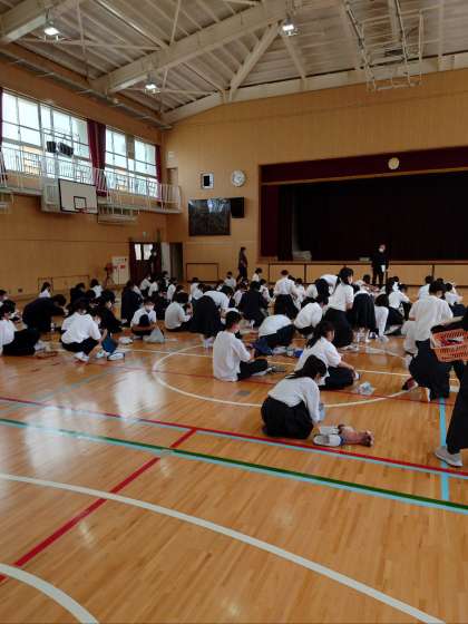 5時間目は体育館で全体講話を、6時間目は教室で読み物教材を読んで、自分の考えをまとめました。