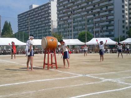 2日、快晴の日曜日。お隣の南港光小学校の運動会に行ってきました。