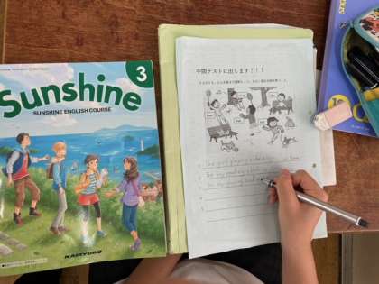 最後に〜ingを使った英文を自分で考えて書くところで終わりました。英語で自分の気持ちや考えを話したり書き表せるようになることは大切ですね。英語での表現力をさらに身につけてください。