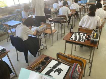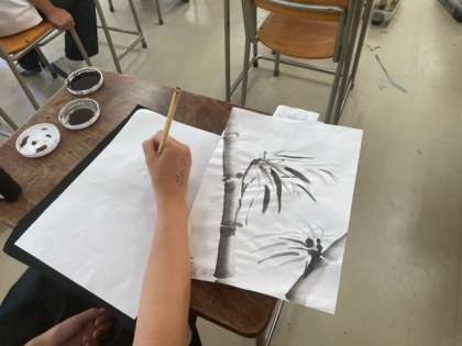 3時間のうち1回目の今日は竹を破墨法で描きました。タブレットで見本を探しながら描く生徒もいて、どんどん上手に竹を表現していました。