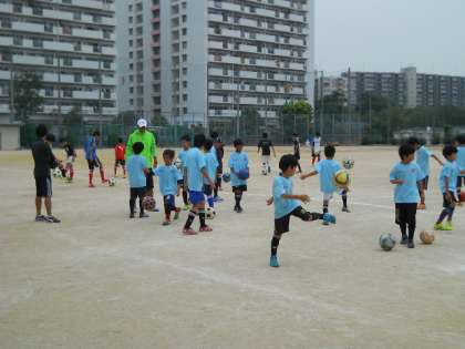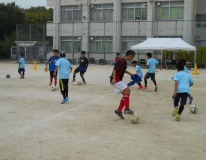 運動場ではサッカー部が少年チーム−南港サウスマンと合同練習です。