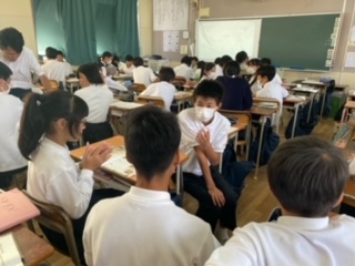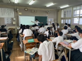 今日は5時間めに1年2組の社会の授業を見せていただきました。歴史の世界4大文明について学んでいるところでした。
