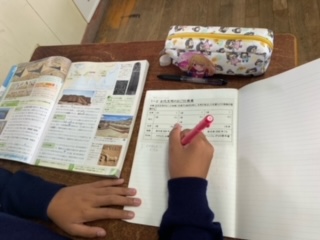 「古代文明がおこったところの共通点について4〜5人で話し合いましょう。」と指示がでると、みんな一生懸命話し合って考えていました。(ちゃんと「川です。」と正解を言えていました。)