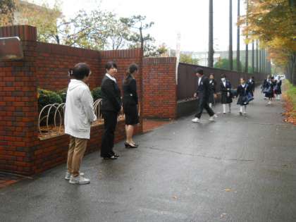 13(金)までの5日間、授業を見学したり、学級活動や部活動などで直接生徒と触れ合うことにより、先生としての資質を高めることを目的にしています。さっそく、今朝から正門指導で、元気にあいさつをしています。