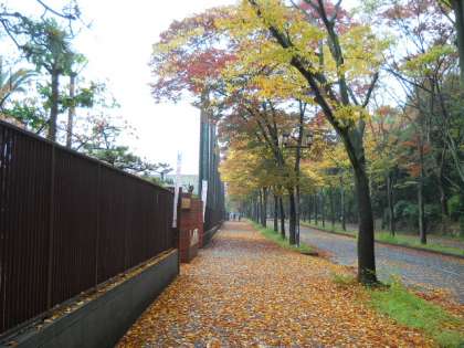 写真右は約30分前の同じ場所ですが、落ち葉のじゅうたんですね。生徒が登校する前に、毎朝、管理作業員さんが掃除をしてくれています。