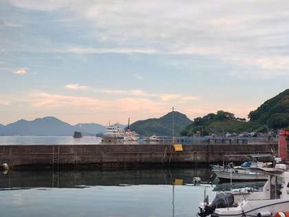 おはようございます。気持ちの良い朝を迎えました。海は静かで、鳥の声もよく聞こえます。朝から先生たちは民泊先の生徒の皆さんの様子を見に回ります。