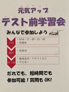 元気アップの取り組みとして、放課後の学習会を行っています。2年生の生徒たちも残って学習や課題に取り組んでいます。時間がありましたら、参加してみませんか。声をかけてくれたら先生もお手伝いしますよ。がんばりましょう。
