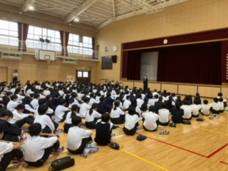 校長先生から、「逆算して行動する」ことについて、お話がありました。一生懸命、学級代表がクラスメイトたちに大きな声で列に並ぶように声をかけていることについて、もっと皆さんは、言われなくても自分で意識して行動しましょうと呼びかけました。