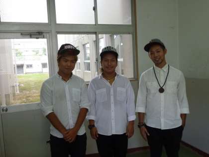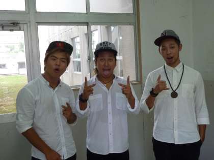 10月9日5限目 2年生が文化発表会で歌う歌の作詞・作曲また歌われているMOCAさんとRoverさんとRenさんが来られ、格技室でミニコンサートを開いていただきました。