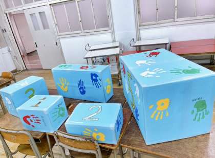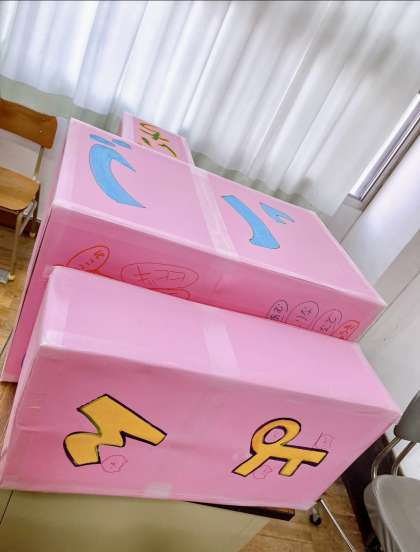 いよいよ明日は体育大会です。学年種目で使います。生徒代表、一生懸命作りました。がんばりますので応援よろしくお願いします!