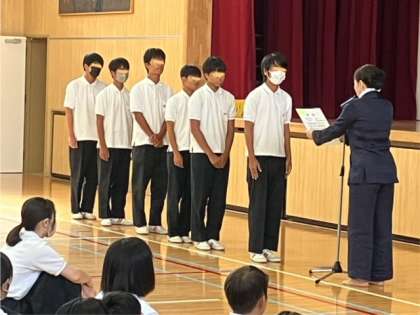 本日は、夏休み中に授与された部活動の表彰状の伝達から始まりました。