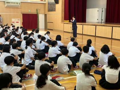 始業式では、学校長より「SSRについて」、「平和について」、「防災について」のお話がありました。