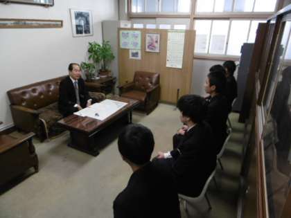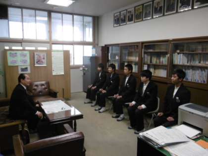 校長先生が面接官となって1組の生徒が面接練習を受けました。