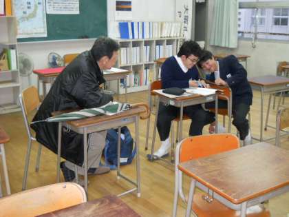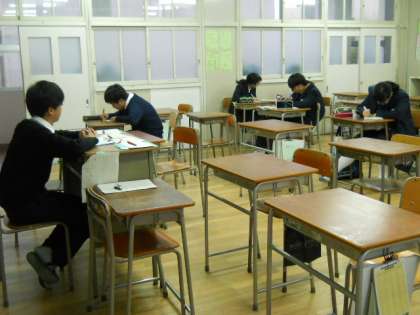 雨が上がってぐっと冷え込んできた放課後、元気アップの部屋では2年生が「世界遺産検定」の勉強を、3年生の教室では英語の単語の再テストをしていました。3年生のほかの教室でも何人かが自主学習をしていて、だんだん受験モードになってきたかな?