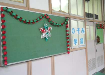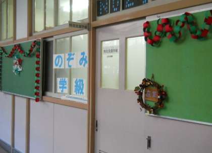 のぞみ学級の廊下の掲示物が変わりました。クリスマスバージョンです。