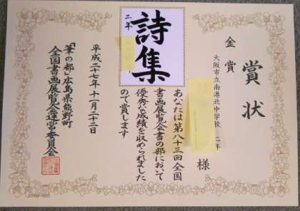 金賞3名、銀賞17名、銅賞9名、入選5名。