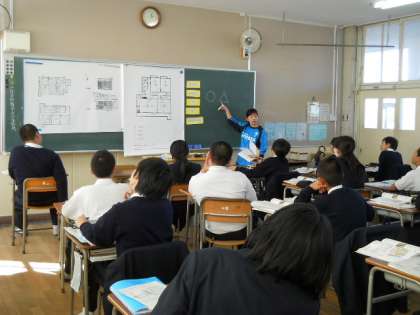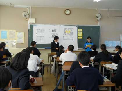 ある家族の構成や年齢、どのような生活を重視するかをもとにして、最適な間取りを考えます。自分で考えた後、班で意見を交流しより良い住まい方を発表します。