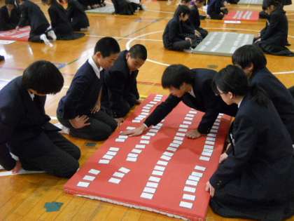 年末からの特訓の成果か、上の句が読まれた瞬間に手が伸びる句も多く、熱戦が繰り広げられました。