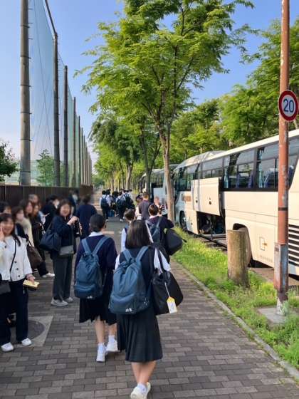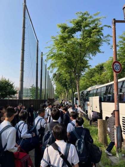 清々しい青空のもと、3年生のみなさんは修学旅行に出発しました。保護者のみなさま、お見送りありがとうございます。