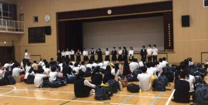 修学旅行を終え、無事学校へ戻ってきました。3日間114人特に大きな怪我や病気なく、安全に帰ってくることができました。帰校式でお世話になった方々にお礼の挨拶を行い、何ヶ月も前から準備を進めてくれていた修学旅行実行委員に拍手を送りました。3日間天候に恵まれ、充実した修学旅行となりました。ゆっくり休んでくださいね。