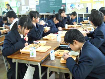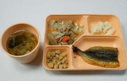 2月3日は節分。給食も行事献立です。「鰯のかば焼き」と「福々豆」が登場しました。他には「豚肉と野菜の煮物」「カリフラワーの柚子の香あえ」「白菜とわかめのすまし汁」がつきます。