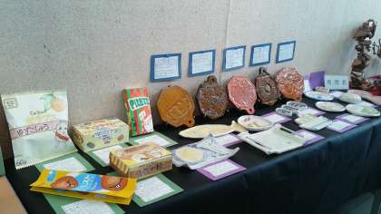 本校からも、各学年が美術の授業で製作した鍋敷、陶芸、パッケージデザインの優秀作を出品しています。