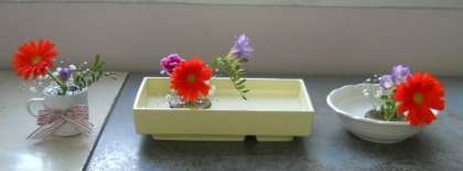 3月第二週の華道部の作品です。今週末には卒業式があり、3年生を送る花となります。