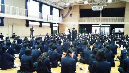 在校生代表の「送る言葉」と3年生を送る歌「遥か」の合唱に続いて、