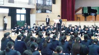 卒業生代表が「別れの言葉」と卒業の歌「絆」で答えました。