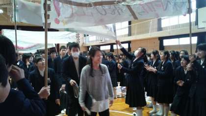 最後は、在校生の各クラス手づくりのアーチと花道を通り、拍手に送られて退場。
