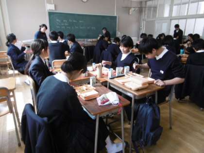 今日の給食の様子です。1年生はしばらくは出席番号順の席で前を向いて食べていますが、3年生は早速机をくっつけて楽しそうですね。