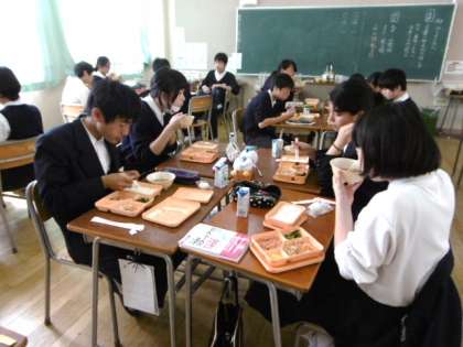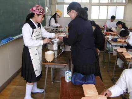 小松菜のおひたし、肉汁に「かしわ餅」もついています。