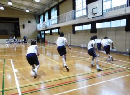 2限、2年1組の体育は男女とも体育館でシャトルランです。