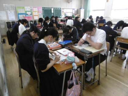 3限、3年2組は社会の授業でした。4人グループでワークシートに取り組んでいます。今日のテーマは大正デモクラシーの単元で、吉野作造の民本主義や美濃部達吉の天皇機関説などを取り上げていました。今、話題になっている戦後民主主義や日本国憲法との違いが判るかな?