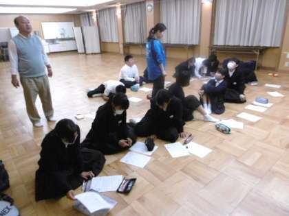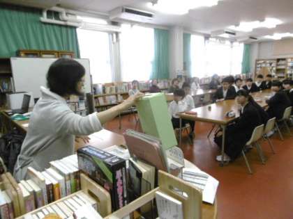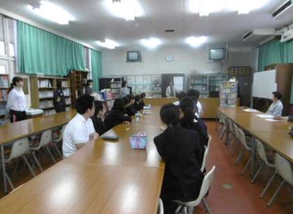 左と中は図書委員会。一緒に開館の仕事をしてくださる元気アップの図書ボランティアの皆さんと顔合わせ。仕事の説明もしていただきました。