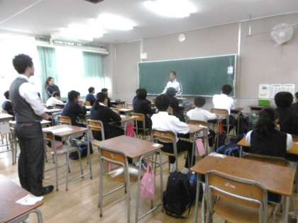 右は風紀委員会。正副委員長を決め、仕事の説明を受けました。交代で朝の玄関前であいさつ運動をしてくれます。