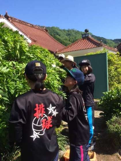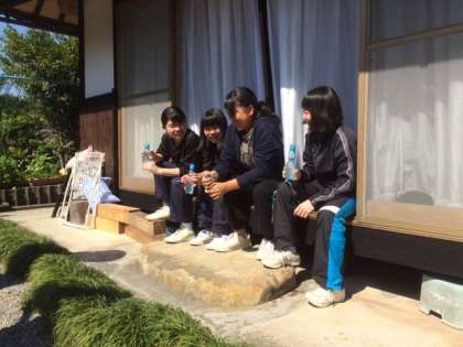 生垣の手入れもします。休憩時間にはご褒美のラムネをいただきます。ラムネ初体験の生徒もいました。
