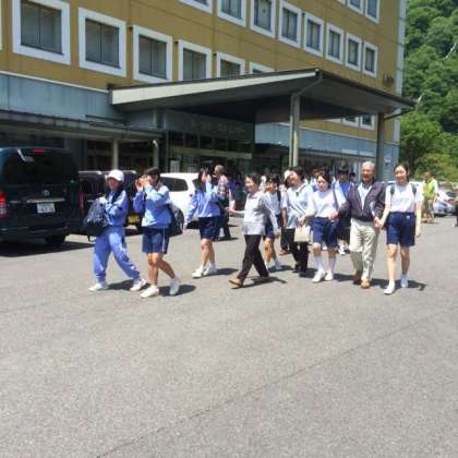 ちょっと緊張気味の昨日とは違い、みんな満面の笑顔でしたが、中には別れが辛くて泣き顔の人も。一泊二日、大切にして頂いたことがうかがえます。安芸太田の皆さん、本当にありがとうございました。