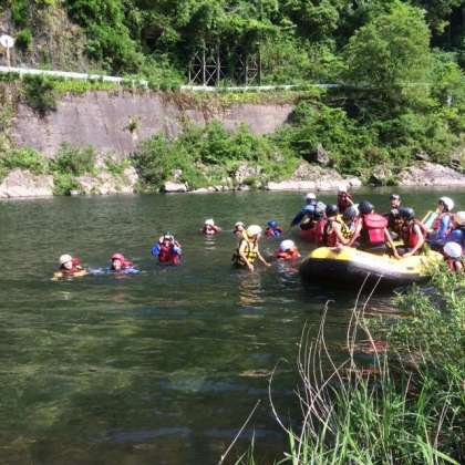 途中のポイントには民泊先の方が応援に。息を合わせて、はい、ポーズ。