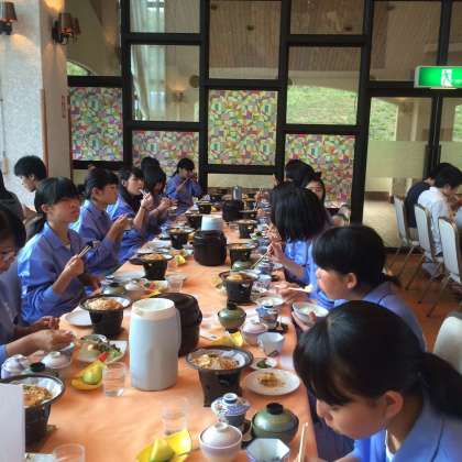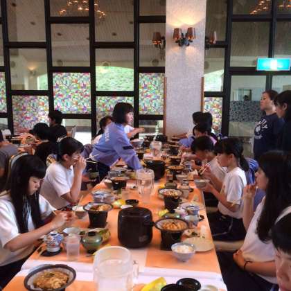夕食の様子です。ラフティングで大暴れしてお腹が空いたのか、なかなかの食欲です。