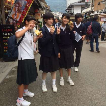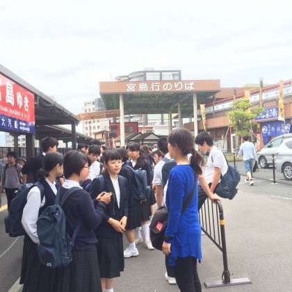 厳島神社、水族館を見学して昼食も班別に食べます。