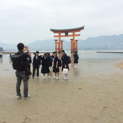 引き潮で大鳥居のしたまで歩いて行けそうです。