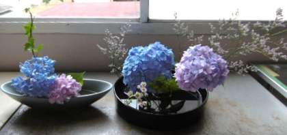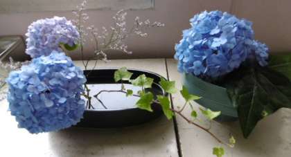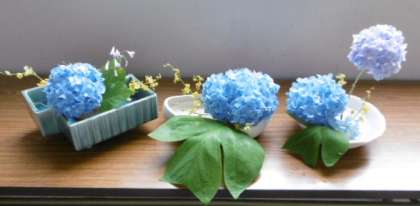今週の華道部の作品です。この季節らしいアジサイですね。