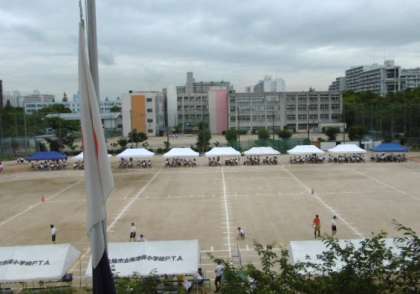 9日(木)曇り空の下、体育大会予行を行いました。天気が心配でしたが、時折お湿り程度の雨がパラつくくらいで、閉会式の練習をする頃には日差しも強くなり、すべての予定をこなすことができました。