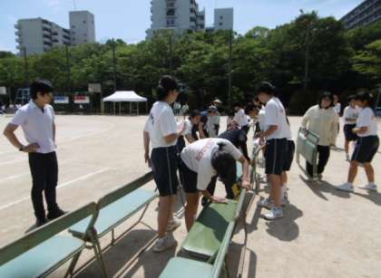 9日(木)午後から、係生徒とサッカー・野球部のボランティアが体育大会前日準備をしてくれました。