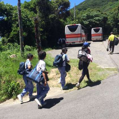 野外炊飯の後片付けに手間取り、約30分遅れの1時18分にセンターを出発しました。
